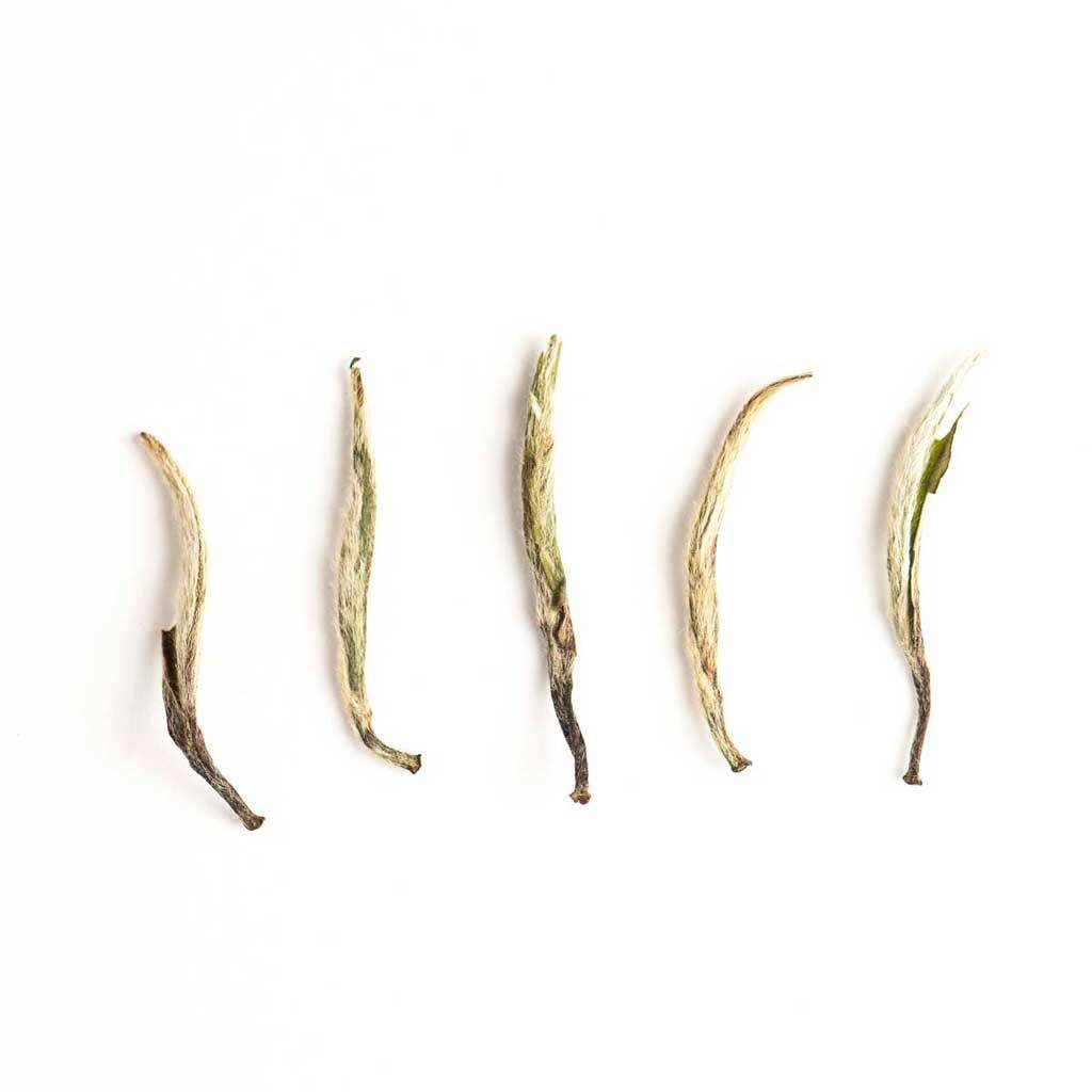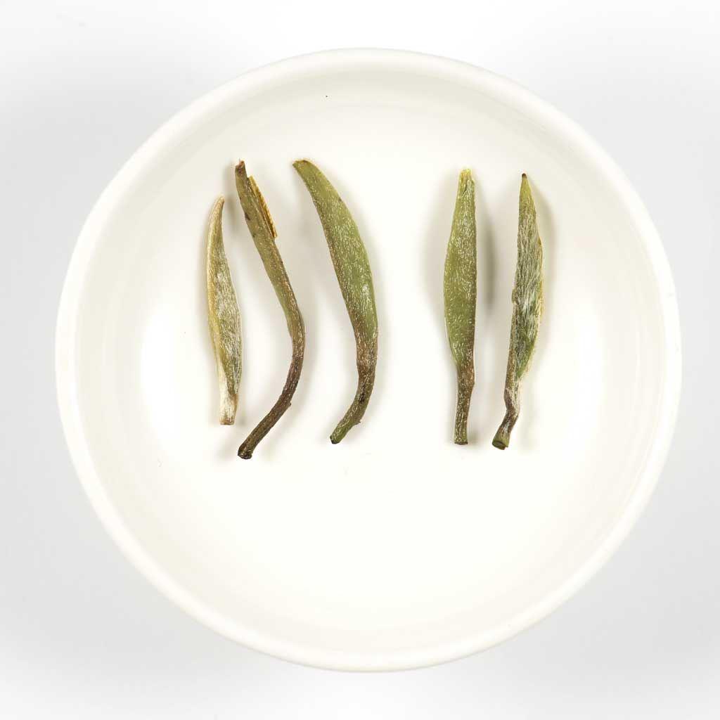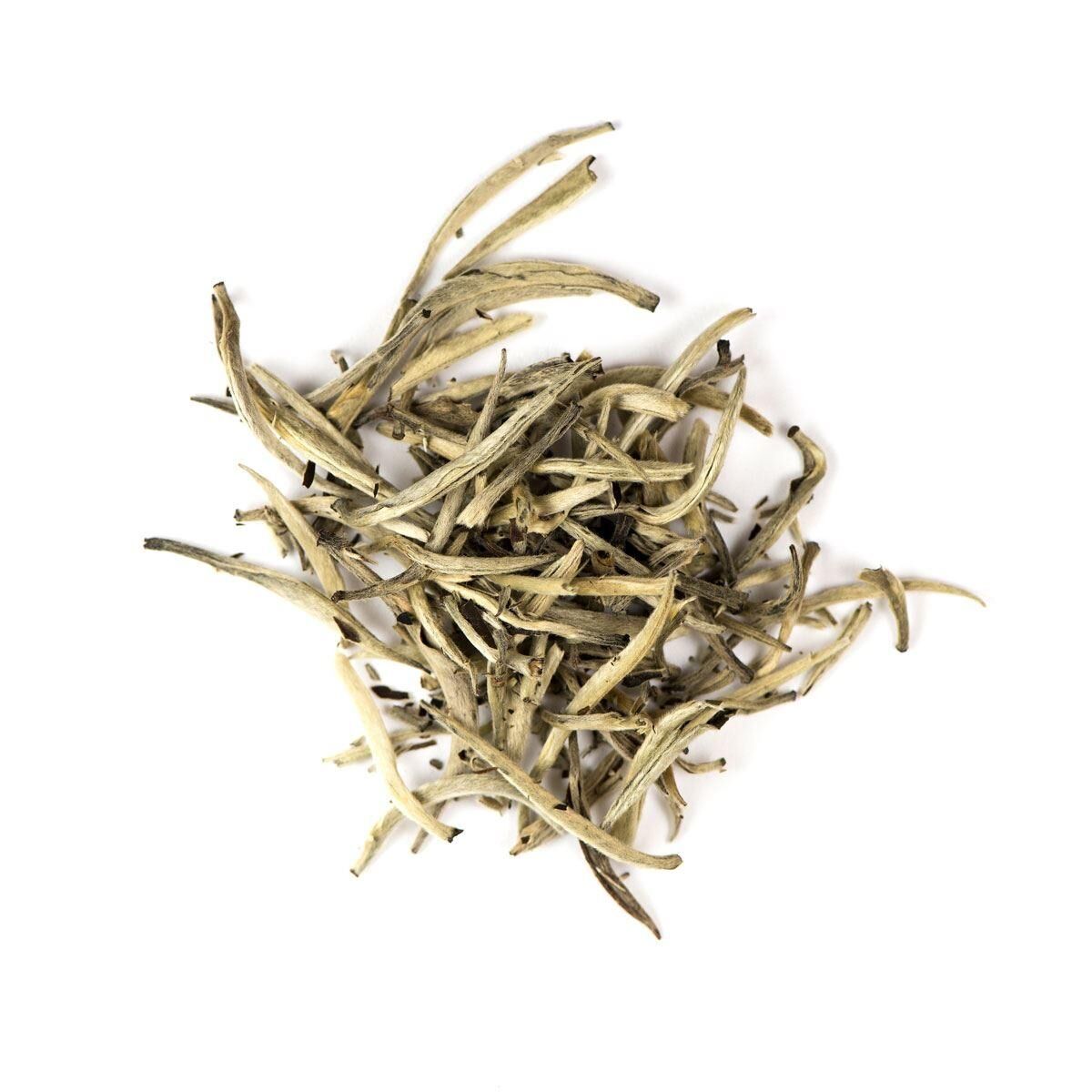 Este bai hao yin zhen, llamado agujas de plata, es originario de la provincia de Fujian. Este té blanco se elabora a partir de los brotes más jóvenes de la planta de té. Brotes (yemas) que aún no se han abierto recolectadas manualmente. Después de un costoso proceso de recolección las hojas son procesadas a través de un largo proceso de marchitamiento.