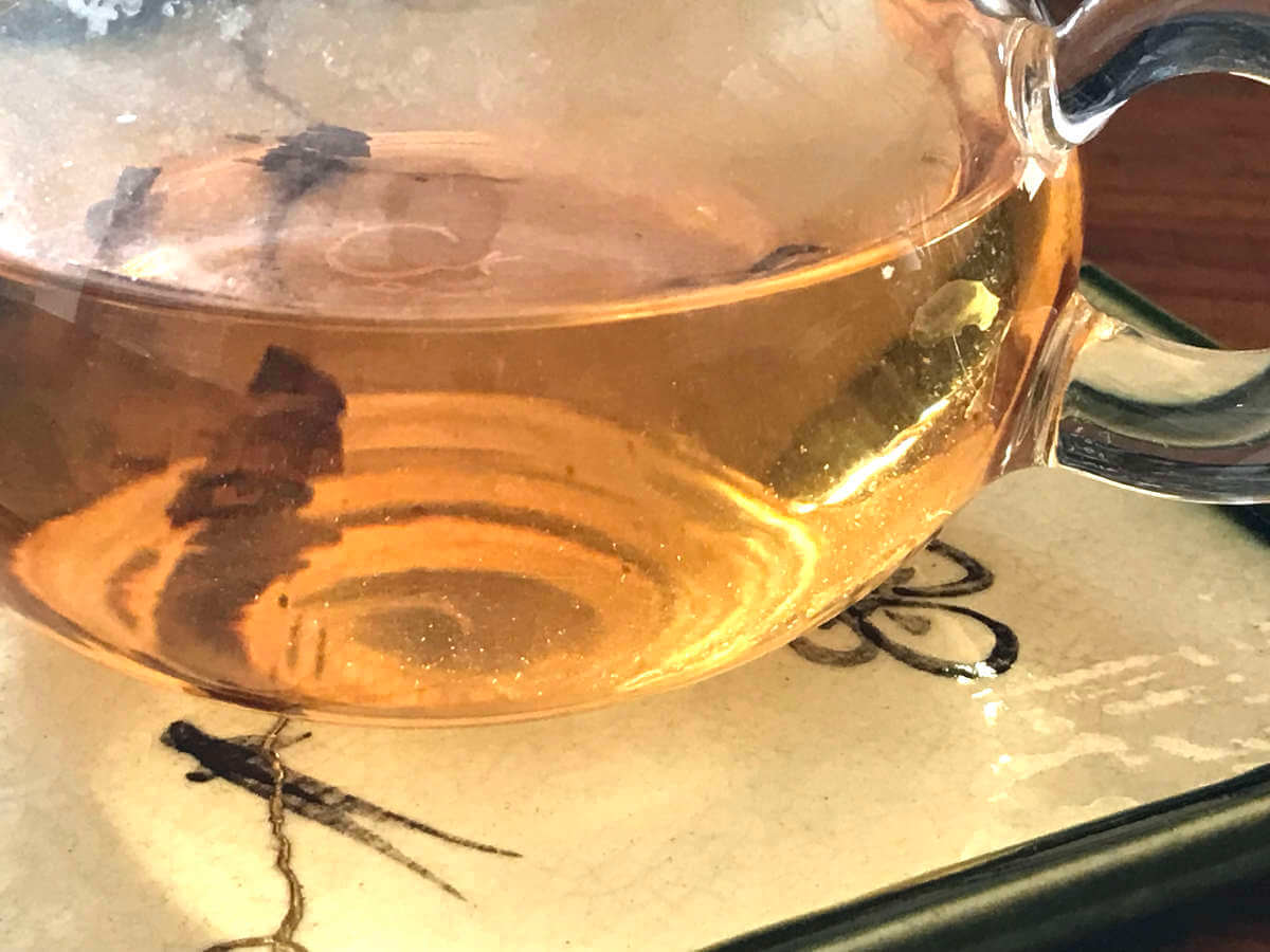 Preparación del Gong mei al estilo gongfu cha con tetera de vidrio de 270ml.