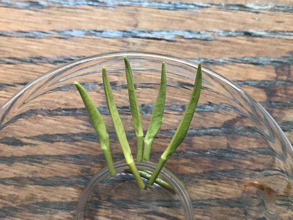 Esta forma de preparar el Jun shan yin zhen nos permite observar la belleza de la hoja y debido a su carácter, por mucho tiempo que tengamos la infusión en contacto con el agua, no se intensifica mucho, pudiendo beber y disfrutar este té con calma.